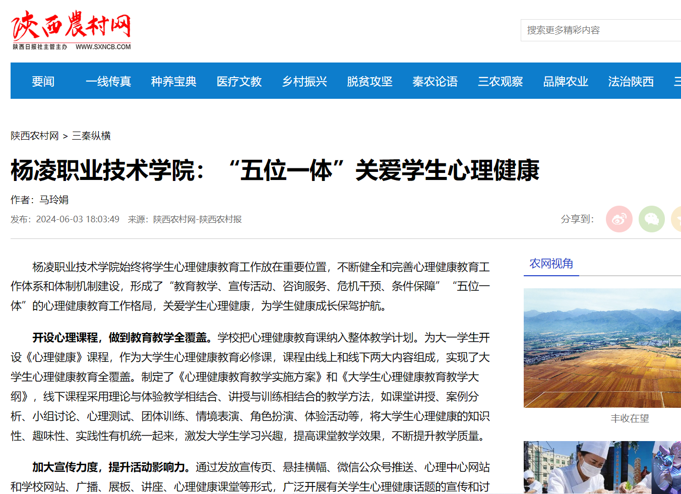 【陕西农村网】杨凌职业技术学院“五位一体”关爱学生心理健康