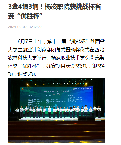 【爱杨凌】3金4银3铜!杨凌职院获挑战杯省赛“优胜杯”