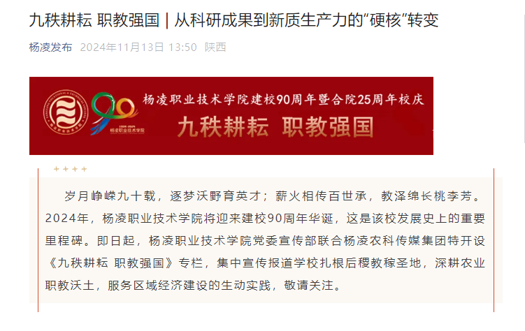【杨凌发布】九秩耕耘 职教强国 | 从科研成果到新质生产力的“硬核”转变