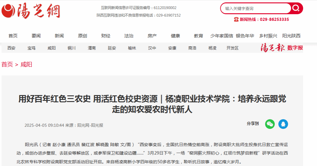 【阳光网】用好百年红色三农史 用活红色校史资源|杨凌职业技术学院:培养永远跟党走的知农爱农时代新人
