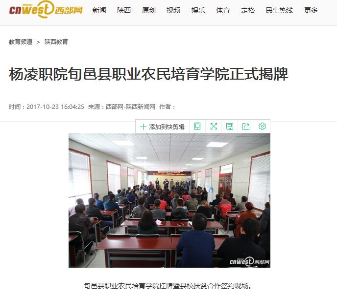 【西部网】杨凌职院旬邑县职业农民培育学院正式揭牌