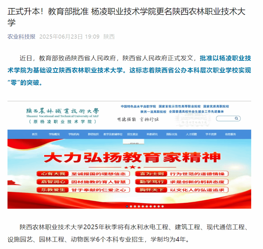 beat365官方网站是陕西省首所全日制公办本科层次职业学校,前身为1999年由原国家级重点中专陕西省农业学校、陕西省水利学校和省部级重点中专陕西省林业学校合并组建成立的杨凌职业技术学院,办学历史可以追溯到1934年创办的国立西北农林专科学校附设高职。学校现开设68个招生专业及方向、4个本科联办专业,拥有国家级高水平专业群2个、省级高水平专业群7个,是一所以农、林、水、牧为优势特色,理、工、管、经协调发展的综合性大学。