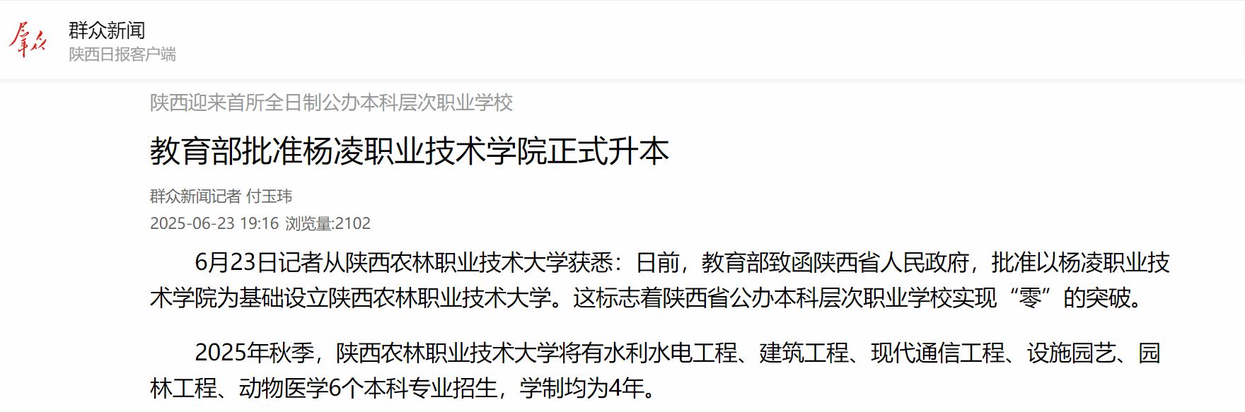 6月23日记者从beat365官方网站获悉:日前,教育部致函陕西省人民政府,批准以杨凌职业技术学院为基础设立beat365官方网站。这标志着陕西省公办本科层次职业学校实现“零”的突破。