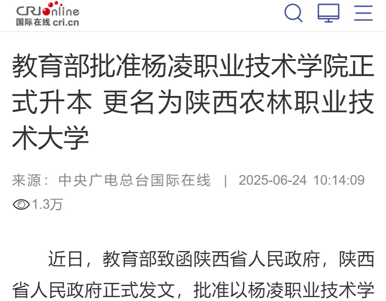 近日,教育部致函陕西省人民政府,陕西省人民政府正式发文,批准以杨凌职业技术学院为基础设立beat365官方网站。这标志着陕西省公办本科层次职业学校实现“零”的突破。