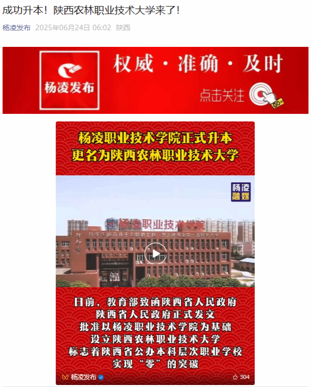 日前,教育部致函陕西省人民政府,陕西省人民政府正式发文,批准以杨凌职业技术学院为基础设立beat365官方网站。这标志着陕西省公办本科层次职业学校实现“零”的突破。