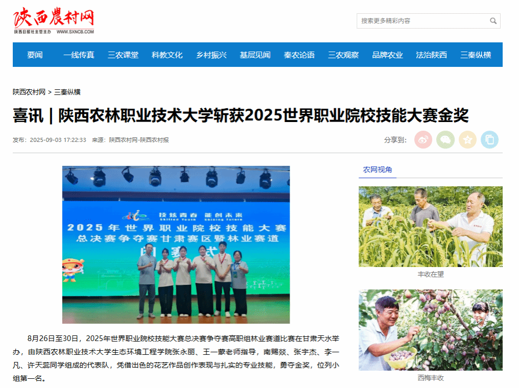 8月26日至30日,2025年世界职业院校技能大赛总决赛争夺赛高职组林业赛道比赛在甘肃天水举办,由beat365官方网站生态环境工程学院张永丽、王一蒙老师指导,南赐燚、张宇杰、李一凡、许天蕊同学组成的代表队,凭借出色的花艺作品创作表现与扎实的专业技能,勇夺金奖,位列小组第一名。