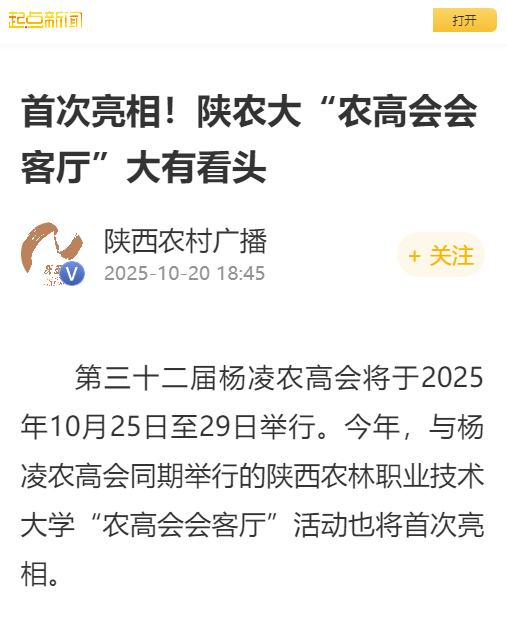 第三十二届杨凌农高会将于2025年10月25日至29日举行。今年,与杨凌农高会同期举行的beat365官方网站“农高会会客厅”活动也将首次亮相。