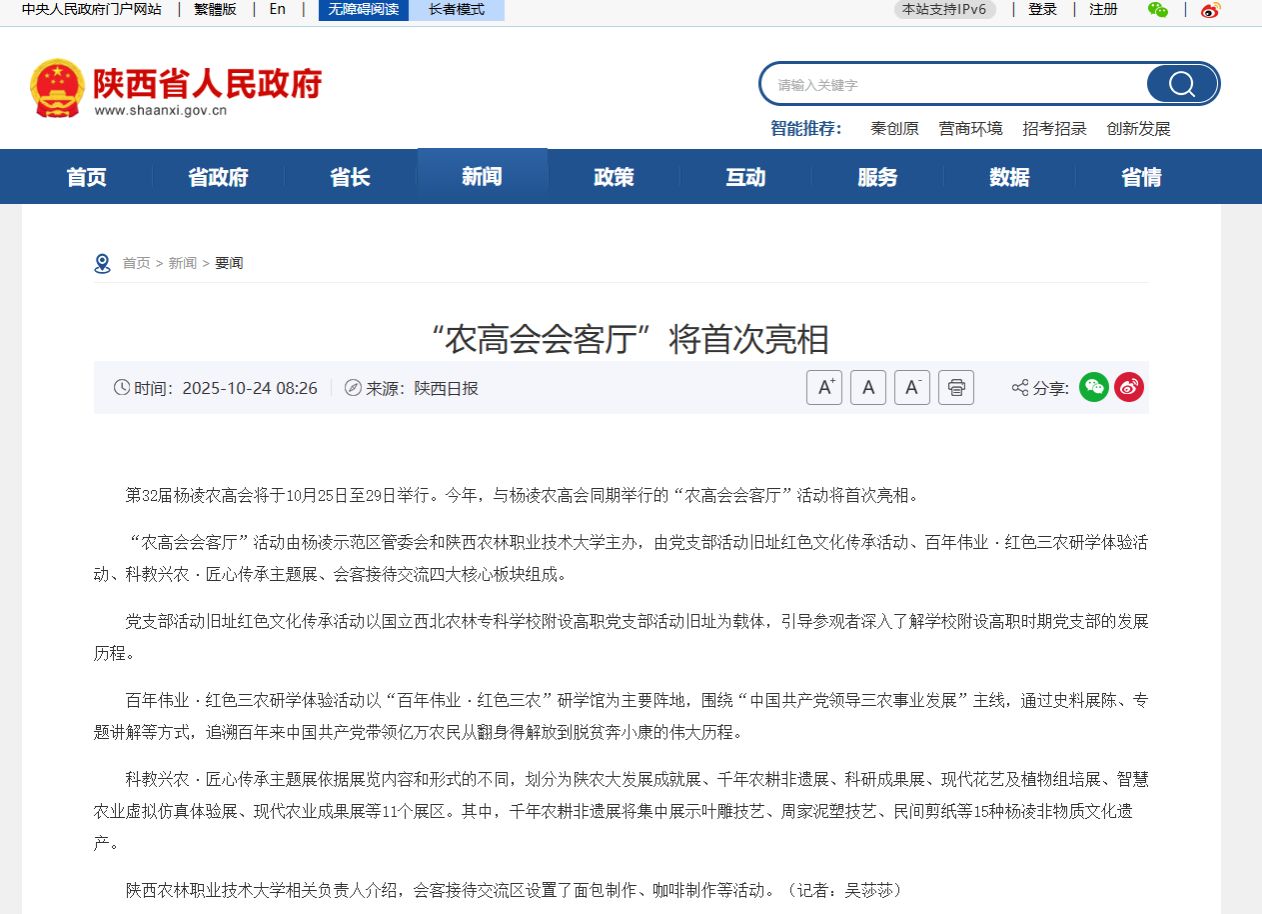 第32届杨凌农高会将于10月25日至29日举行。今年,与杨凌农高会同期举行的“农高会会客厅”活动将首次亮相。