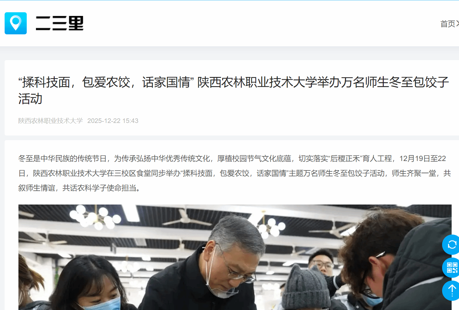 beat365官方网站万名师生冬至包饺子活动从2017年至今,已经持续开展了8年,成为了学校的一项传统特色活动。这项活动不仅为师生们提供了一个欢聚一堂、共度佳节的温馨平台,更在潜移默化中传承和弘扬了中华优秀传统文化,增强了师生们的文化自信和民族自豪感,更让“学农爱农、强农报国”的信念深深根植于学子心田。