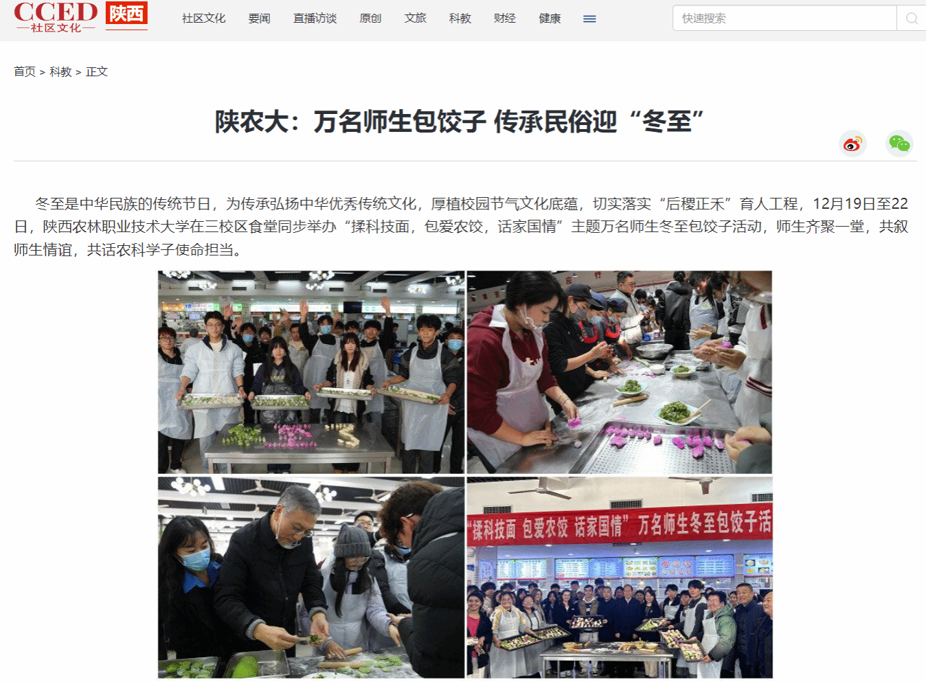 【社区文化】陕农大:万名师生包饺子 传承民俗迎“冬至”