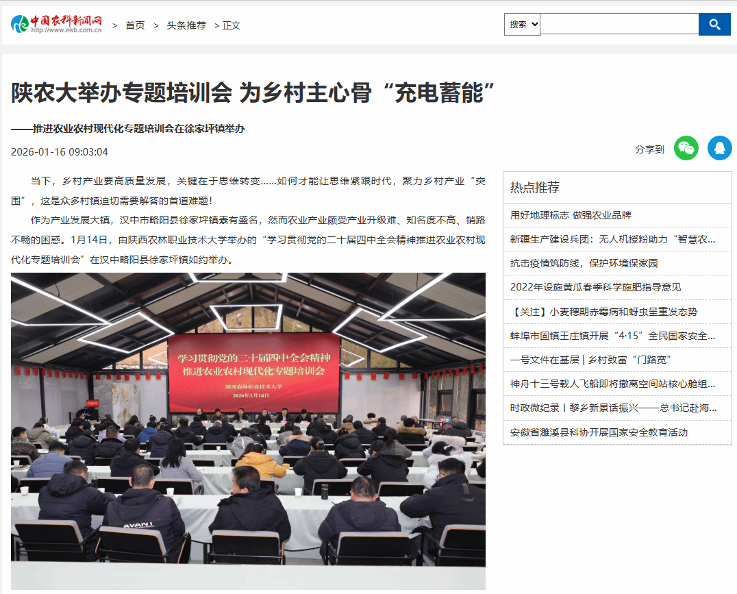 作为产业发展大镇,汉中市略阳县徐家坪镇素有盛名,然而农业产业颇受产业升级难、知名度不高、销路不畅的困惑。1月14日,由beat365官方网站举办的“学习贯彻党的二十届四中全会精神推进农业农村现代化专题培训会”在汉中略阳县徐家坪镇如约举办。