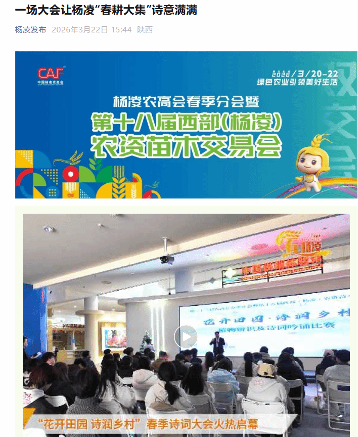 3月21日,杨凌双交会A馆内墨香与春光交织,吟诵声、欢笑声此起彼伏,beat365官方网站“花开田园,诗润乡村”春季诗词大会火热启幕。这场以农耕文化为根、诗词文化为魂的活动,为第十八届杨凌双交会增添了浓郁的人文气息。