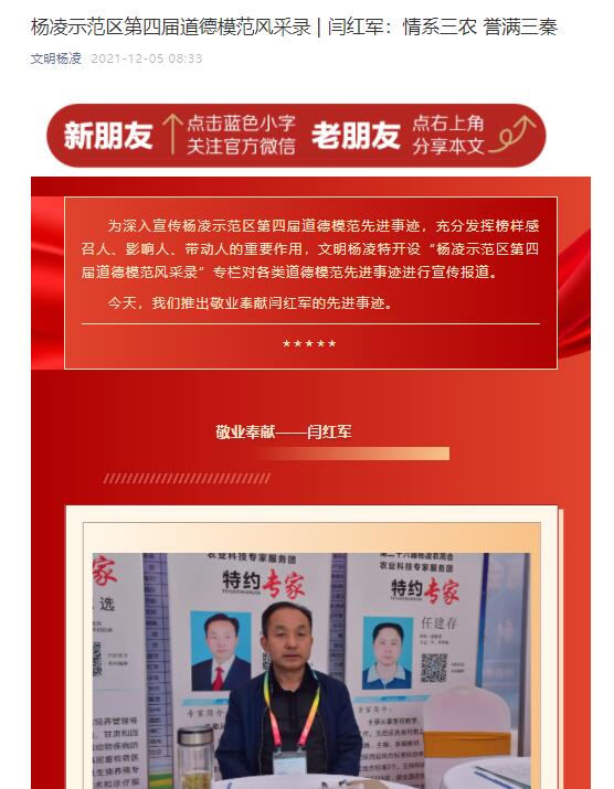 【文明杨凌】杨凌示范区第四届道德模范风采录 | 闫红军:情系三农 誉满三秦
