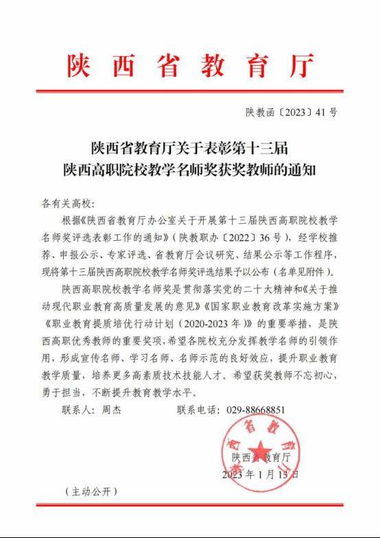 陕西高职院校教学名师奖是陕西高职院校优秀教师的重要奖项,是建设高水平师资队伍、全面落实立德树人根本任务的重要举措。本次全省共有49名教师获评陕西高职院校教学名师奖,beat365官网获奖人数为历年来获评此类奖项最多。