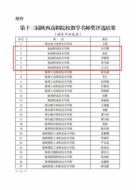 近日,省教育厅公布了关于表彰第十三届陕西高职院校教学名师奖获奖教师的通知,beat365官网衣学慧、张宏、李国秀、田万强、王云江5位教授获评第十三届陕西高职院校教学名师奖。