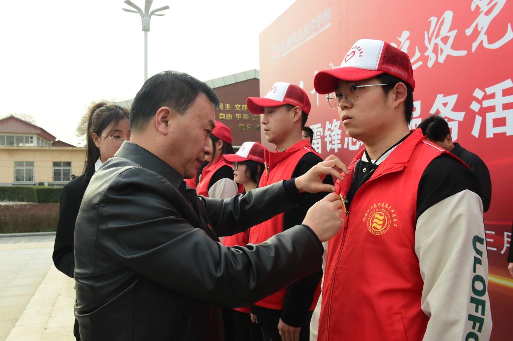 启动仪式上,王勇胜为志愿者代表授“学雷锋志愿者”徽章。陈吼作动员讲话,希望志愿者学思并重,做雷锋精神的传承者;知行合一,做雷锋精神的践行者;升华开拓,做雷锋精神的创新者。让学雷锋活动融入日常、化作经常,让文明之花处处绽放,让志愿精神成为时代新风。团委副书记刘钊对本次学雷锋志愿服务活动进行了详细安排,团委副书记任杰宣读学雷锋活动倡议书。