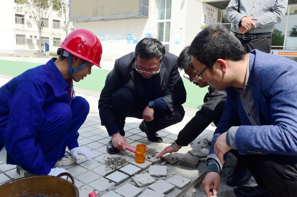活动前期,学院师生认真检查了整个南校区道路地面,发现并标注多处地砖破损问题,采购了修补材料。修缮过程中,学生们结合带队老师示范的施工要点进行修补,排除安全隐患。在保证地砖平整度和固定性的同时,还根据环境特点和使用需求,调整了地砖的颜色和样式,使校园的整体美感更加协调。