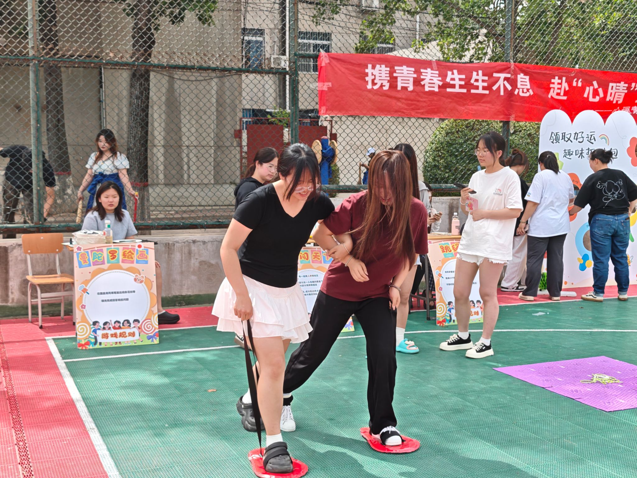 本次活动面向学校全体师生,全程持续3小时。现场精心设计三十余项特色活动,既包含“心理知识加油站”的趣味科普、“心灵涂鸦长廊”的创意表达、“压力回收站”的情绪收纳等治愈系项目,也设置了“夹走烦恼”的手速挑战、“击败负能量”的协作竞技、“坏情绪别粘我”的敏捷游戏,以及曼陀罗心理绘画的艺术疗愈、合力建塔的团队默契考验、“我最棒”的自信心提升等多元活动形式。活动现场,气氛热烈而温馨,通过寓教于乐的形式,让师生在沉浸式体验中掌握心理调适技巧,在团队协作中感受支持的力量,在欢声笑语中卸下心理负担,在互动参与中实现情绪疗愈。